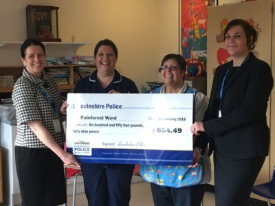 Lincolnshire Police donated money raised from their annual Christmas carol service held at Lincoln Cathedral to the ward as one of their beneficiaries for this year.